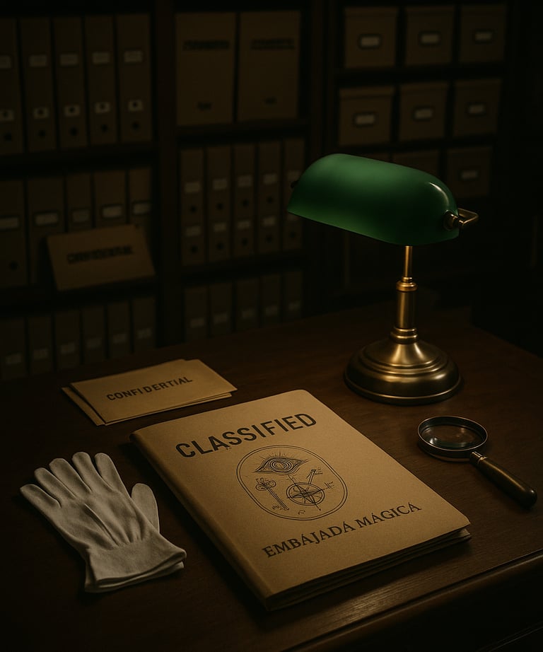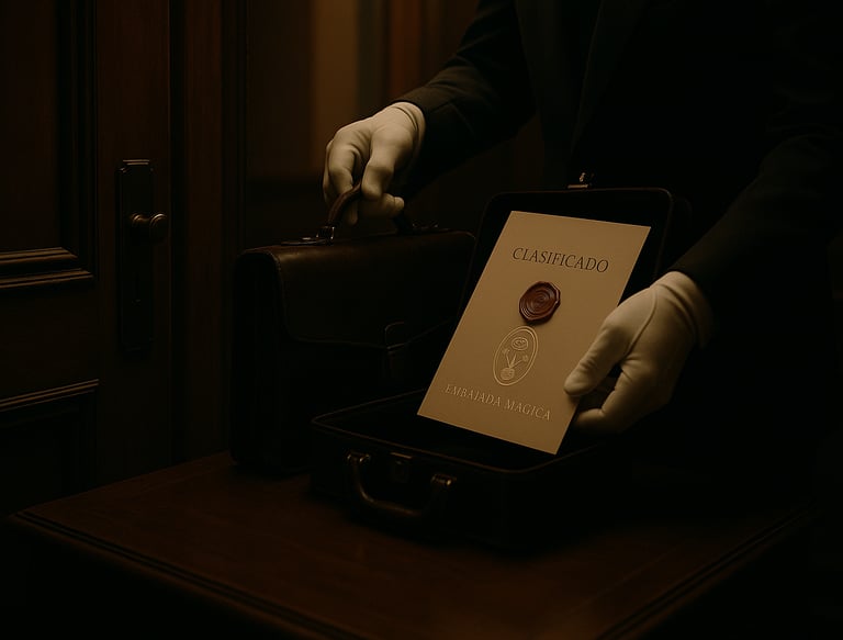 La Tienda de Artículos Clasificados existe para garantizar que aquello que se produce en Embajada Mágica llegue a las manos correctas. Todo lo que se autoriza aquí mantiene el mismo compromiso institucional: precisión, elegancia, funcionalidad y coherencia con el archivo que la Embajada custodia.